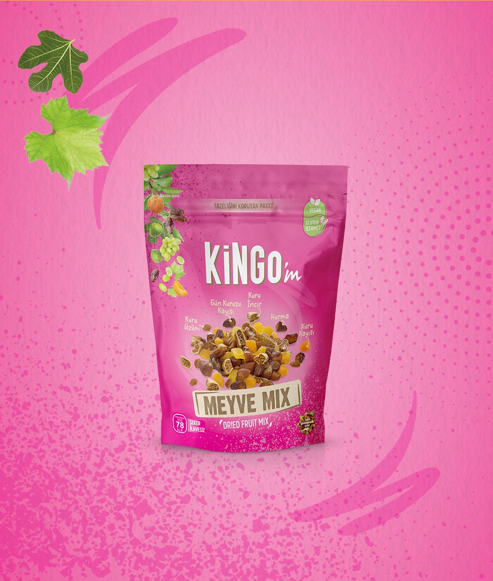 Kingo’m kuru meyveleri arasında seçim yapamadıysanız ve her birinin tadına bakmak istiyorsanız, Kuru Meyve Mix paketimiz tam size göre!